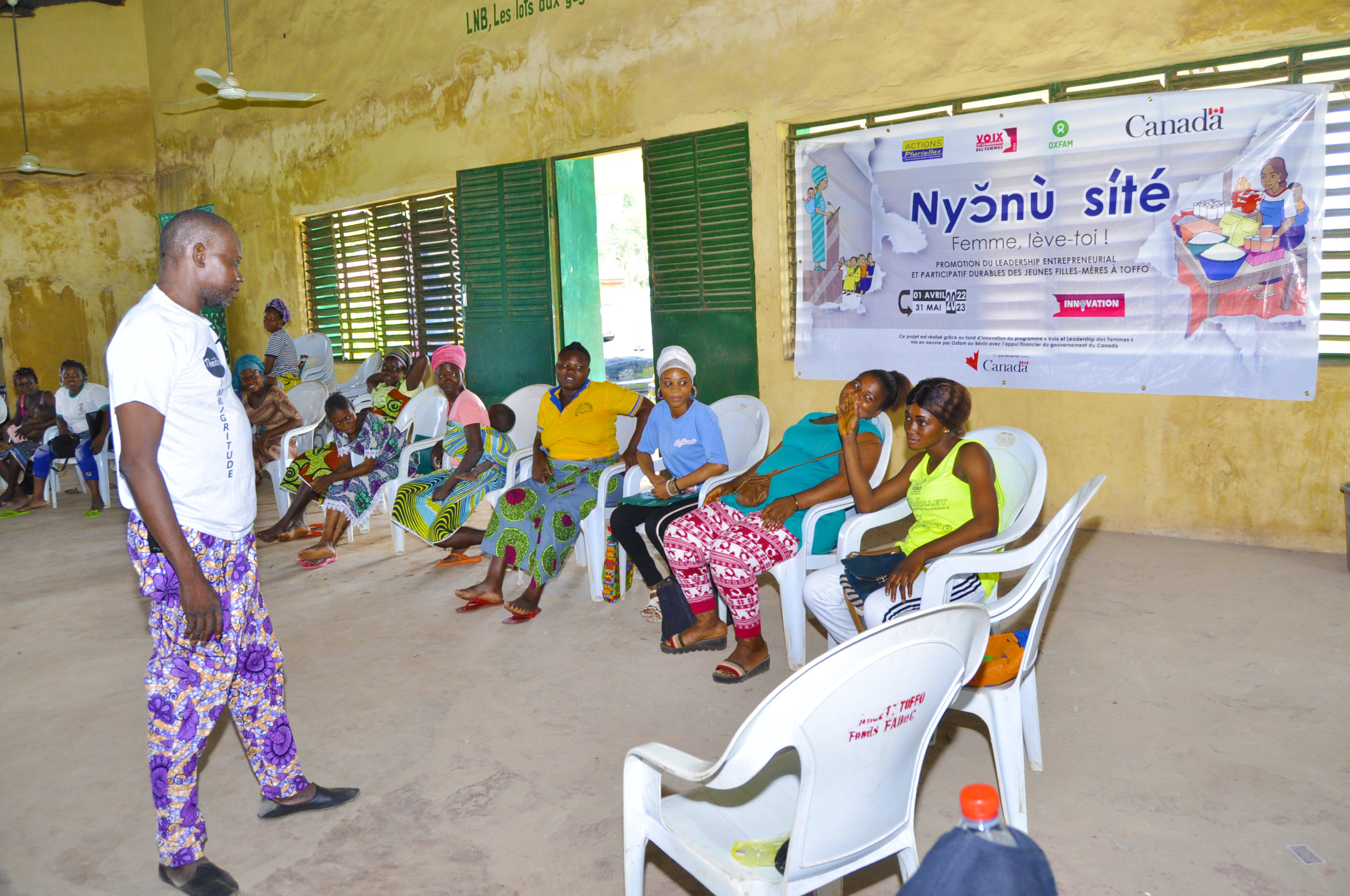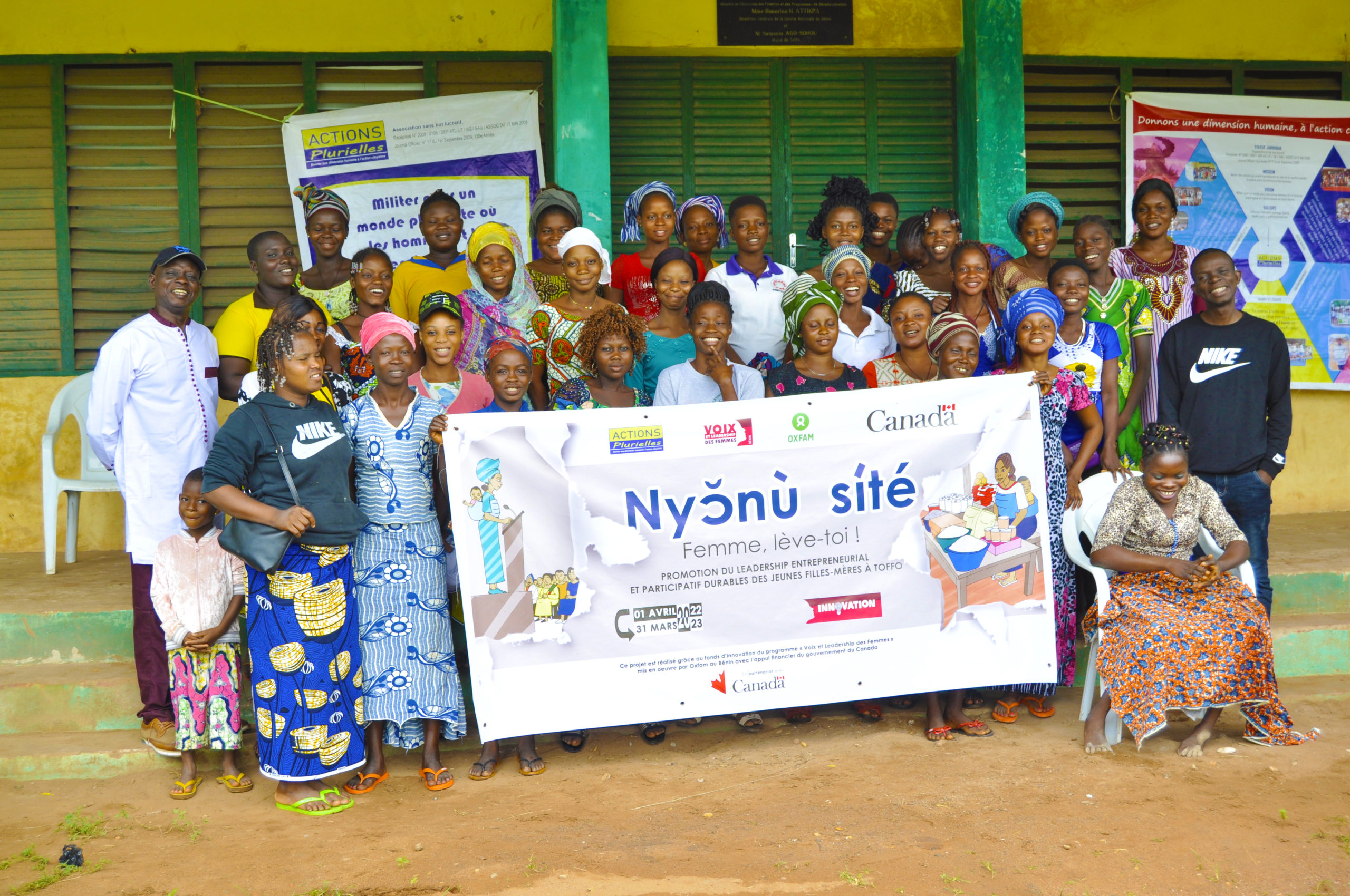 Améliorer la jouissance des droits humains pour les femmes et les filles ainsi que le progrès de l’égalité entre les genres au Bénin, et plus spécifiquement, Contribuer à l’autonomisation économique durable de 40 jeunes filles-mères déscolarisées, âgées de 15 à 25 ans, par le renforcement de leur leadership entrepreneurial et participatif, l’appui à la conduite d’activités génératrices de revenus et la sensibilisation des communautés sur les droits des femmes, est la visée du projet «nyɔ̆nù sité» (femme, lève-toi !), mis en œuvre par Actions Plurielles dans la commune de Toffo.
