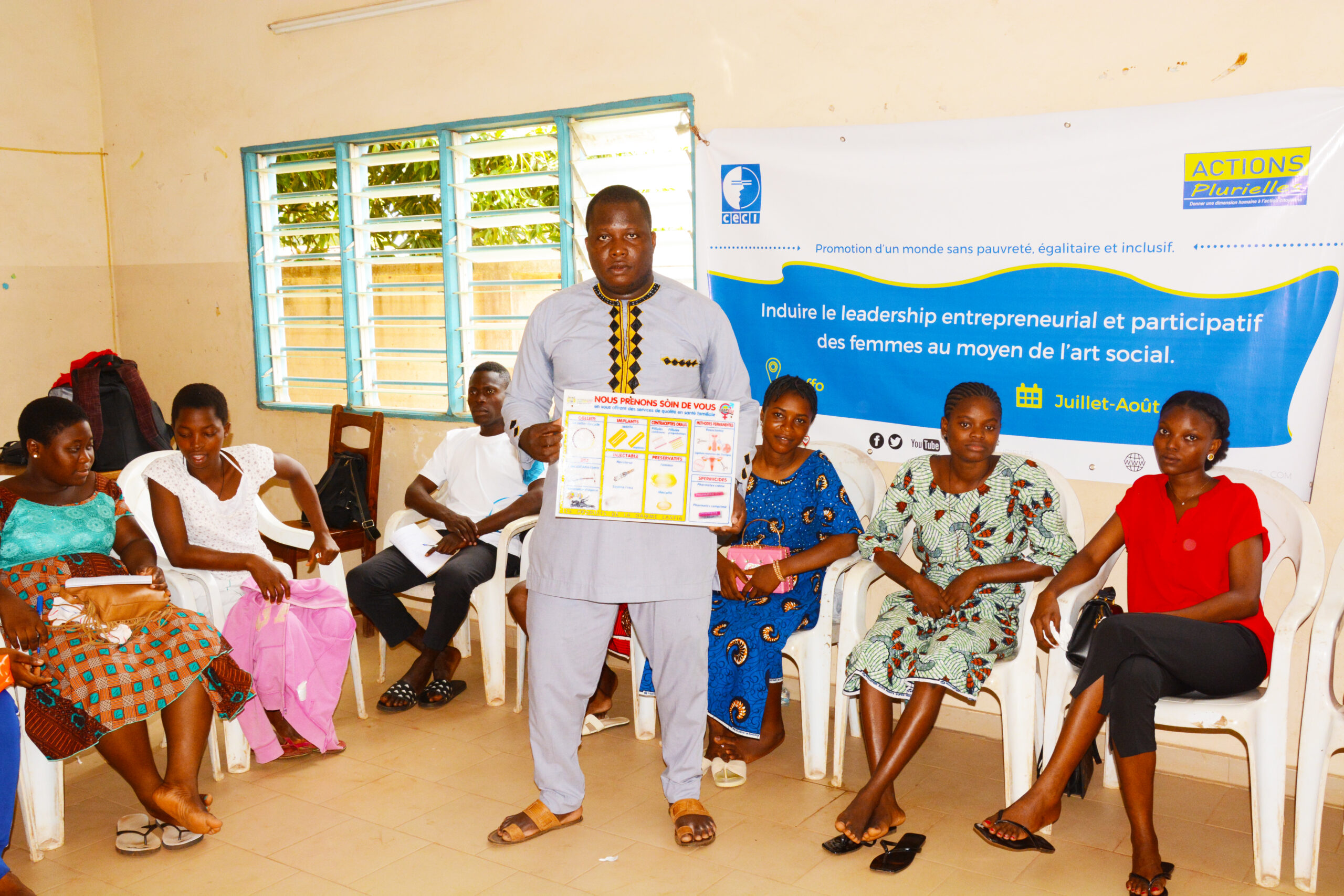 L’image de soi et La confiance en soi, les principaux droits des femmes, la lutte contre les VBG, le droit et santé sexuels et reproductifs, l’influence et participation citoyenne des jeunes, le leadership entrepreneurial et participatif des femmes, et les voies de signalement des VBG ont été les principaux thématiques animés avec pour finalité, le renforcement du pouvoir économique des femmes. Dans une méthodologie participative, la facilitatrice et le facilitateur, ont amené les participantes et les participants venus de plusieurs couches de la population, à s’approprier les thématiques et à intégrer la nécessité de promouvoir un monde juste, sans pauvreté, égalitaire et surtout inclusif.